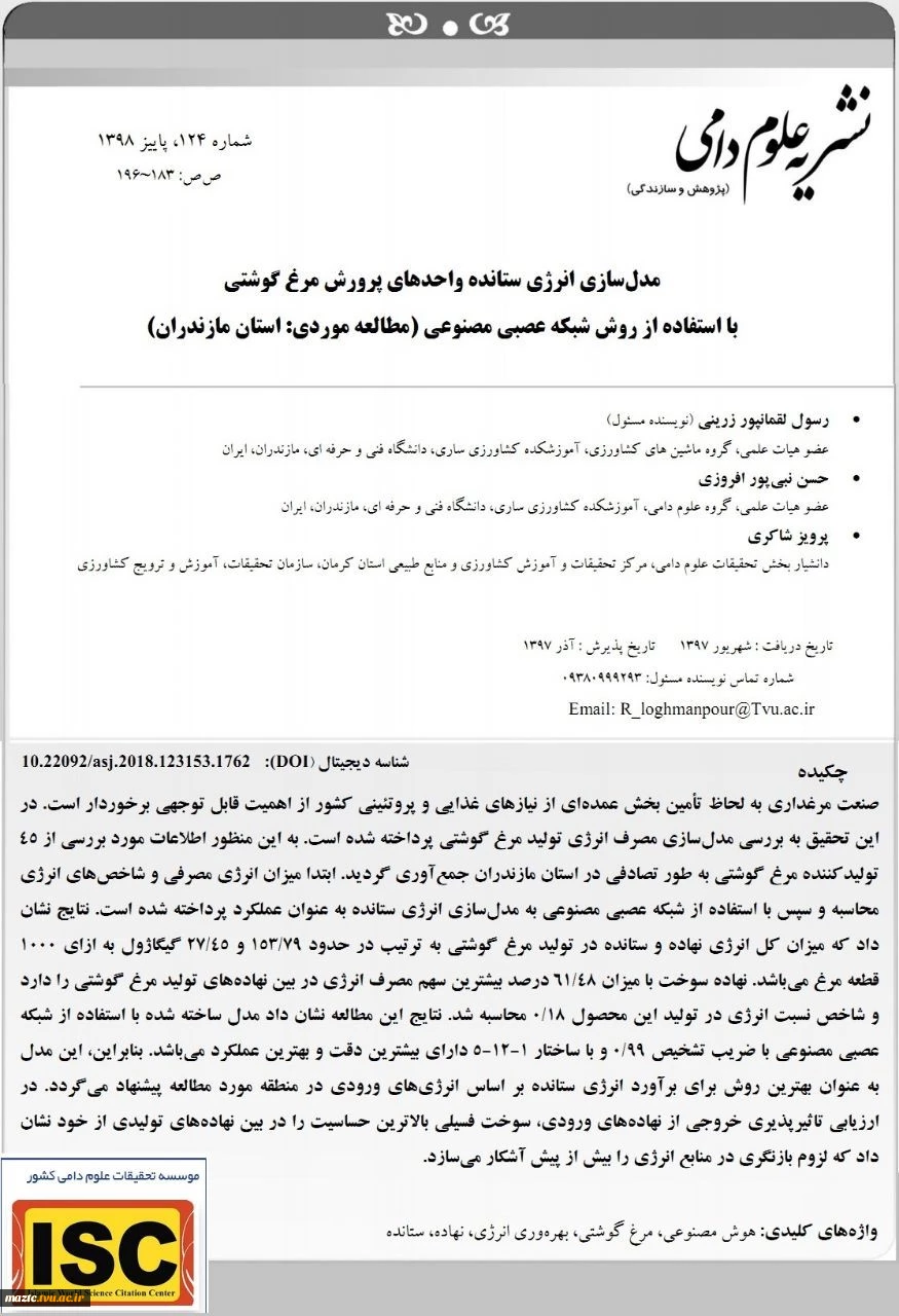امتیاز دهید : چاپ مقاله علمی پژوهشی توسط رسول لقمانپور زرینی عضو هیات علمی آموزشکده کشاورزی ساری 2 یکشنبه 22 دی 1398 ساعت 12:28