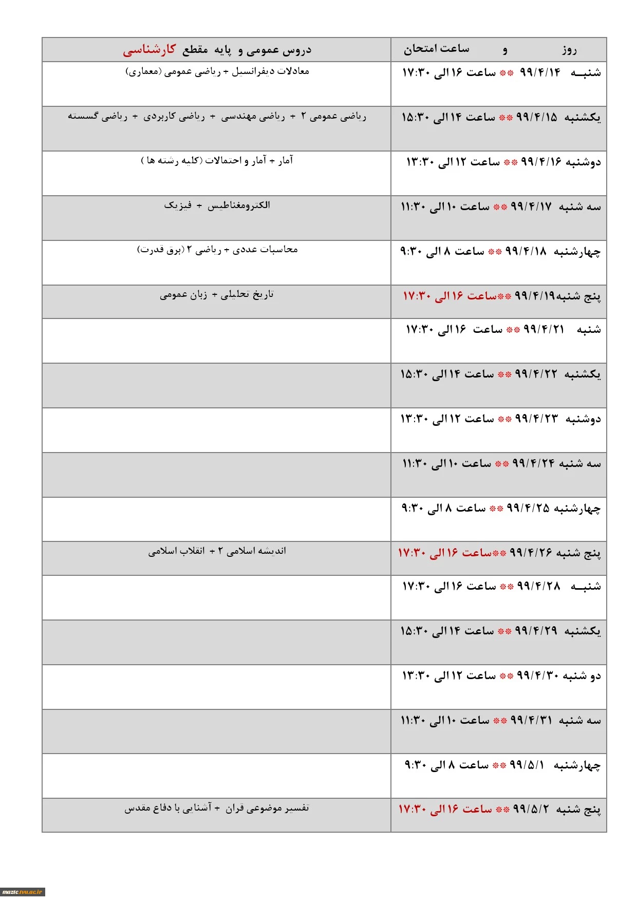 کارشناسی - دروس عمومی و پایه